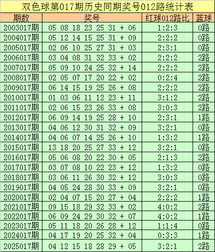 福彩双色球第2026017期历史同期王守礼012路奖号遗漏分析: