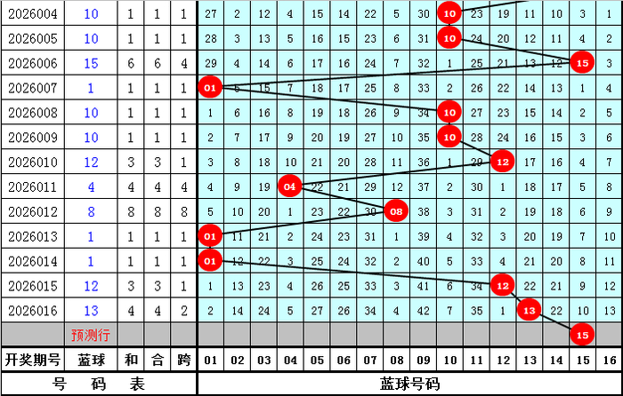 单注号码参考:04 16 21 22 26 32 + 15