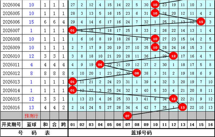 蓝球推荐:蓝球上期开出奖号13,为奇数蓝球,本期预计蓝球继续开出奇数号码,蓝球参考01、07、09、15、16。