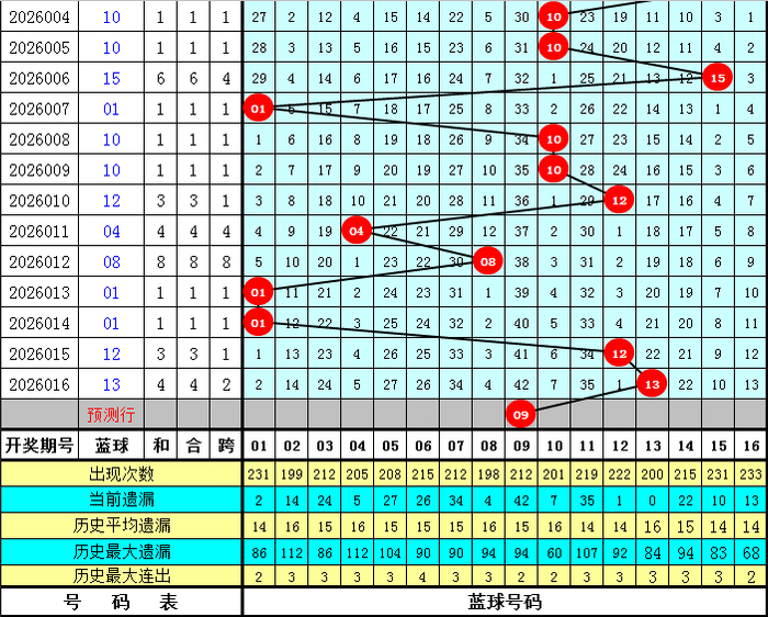和值跨度分析:上期和值开出85,对比第2026015期和值下降了25个点位,本期预计和值在大号区域热出,看好出现在83附近。